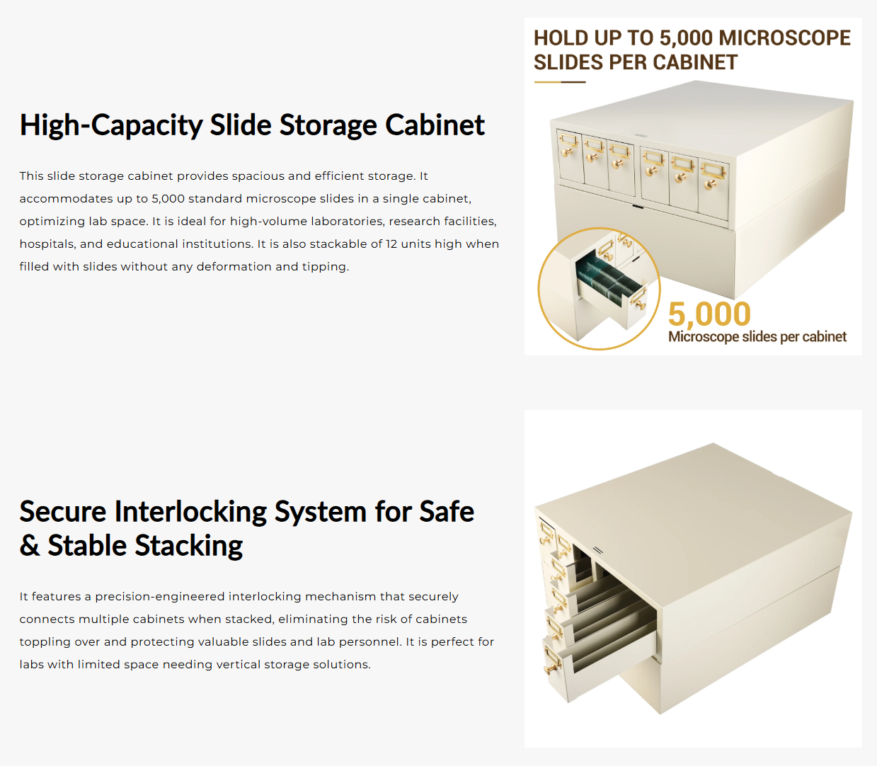 - Hold up to 5,000 microscope slides per cabinet